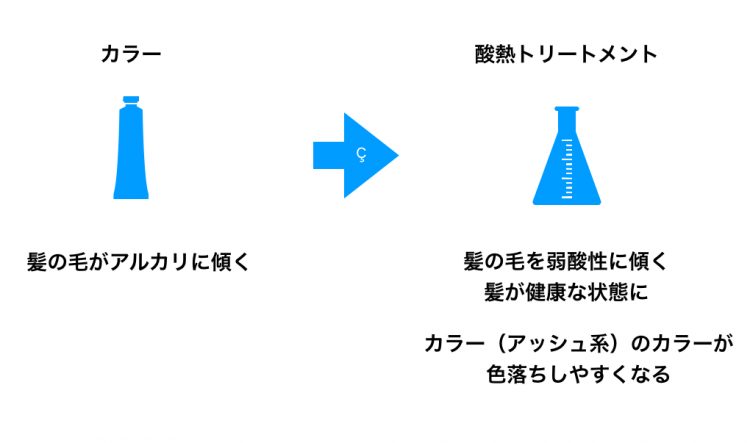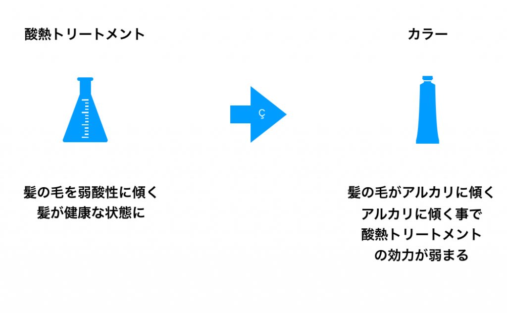 酸熱トリートメントとヘアカラーは性質が大きく異なるメニューだからです。