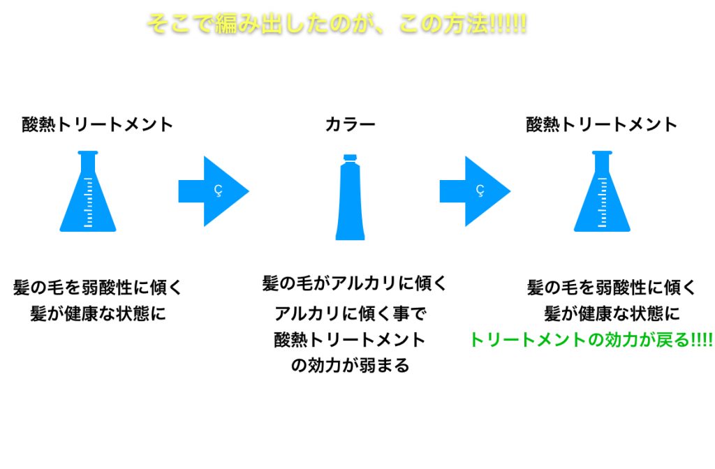 その結果、酸熱×カラーの同意施術をしても問題ない手法を生みだしたのです。