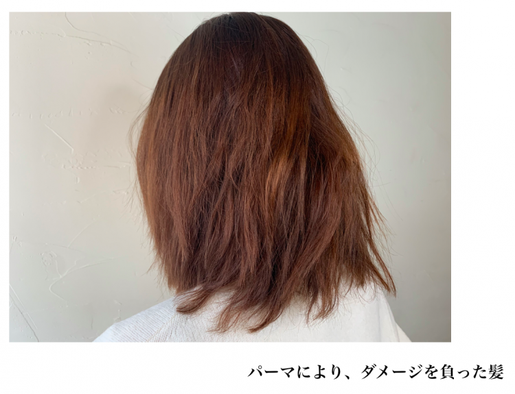 数ヶ月前のパーマにより、髪の毛が広がりやすく、見た目もバサバサしてしまう…