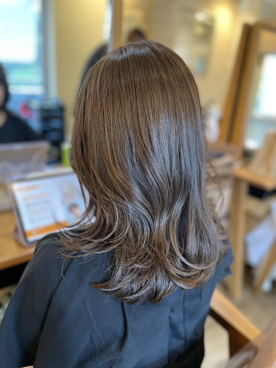 白髪染めだと表現しにくい「アッシュ」や「ベージュ」などは、むしろ脱白髪染めの得意カラーとも言えます。さらにハイライトを組み合わせれば、より選択肢は広がります。