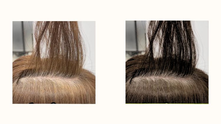白髪染めは根元と毛先の色の違いがはっきりと目立つのに対し、脱白髪染めはぼんやりとなじむように伸びてきます。