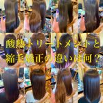 酸熱トリートメントは髪の毛の癖がなくなる、伸びると言われていますが、縮毛矯正やストレートパーマと酸熱トリートメントは 一体何が違うのでしょうか? 主に癖にフォーカスしてお話させて頂きます。