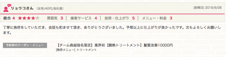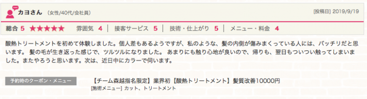 森越スペシャリストチームの酸熱トリートメントは10000円