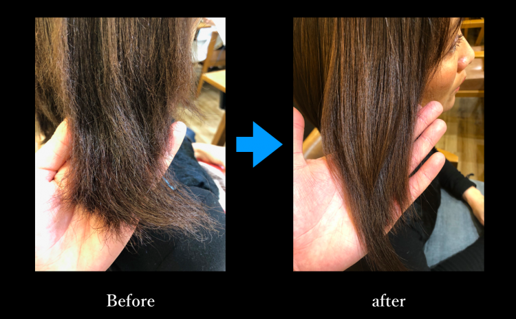 酸熱トリートメント後、髪の毛はハリコシが出て、丈夫になった印象です、またツヤ感、まとまり感は、 酸熱トリートメントする前と比べると、雲泥の差です。 細かい、『アホ毛』のような毛もかなり少なくなり、より髪の毛の状態は綺麗に見えます。