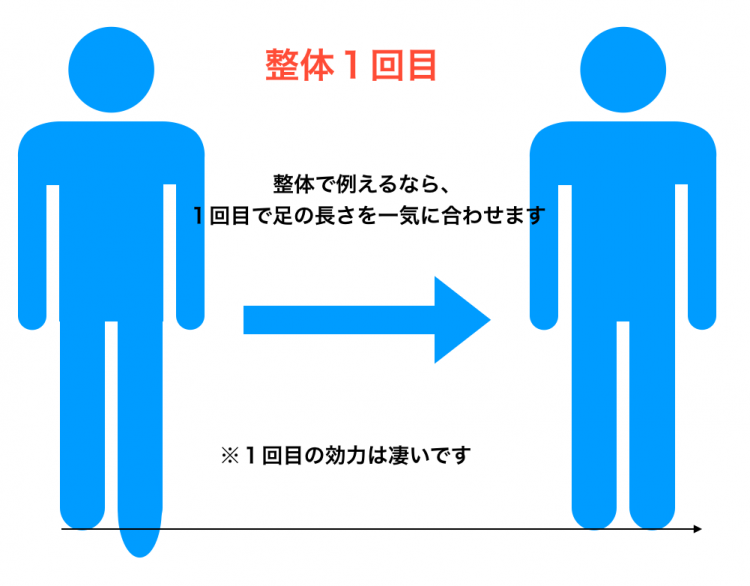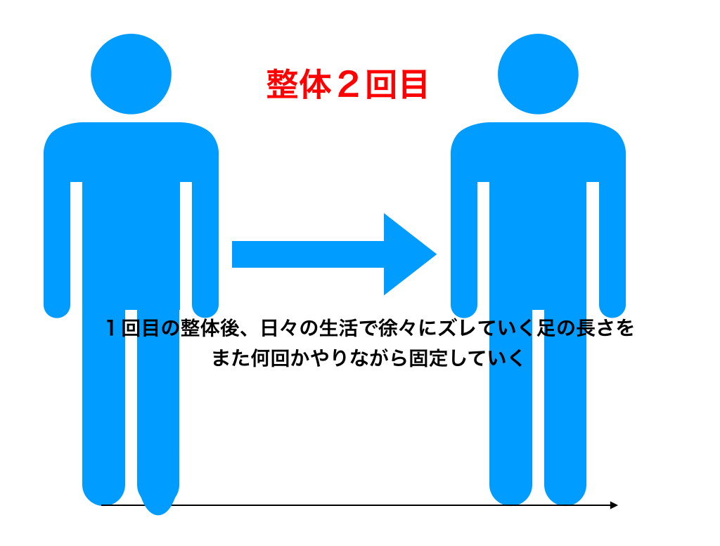 整体に行くと、良く言われるのが、骨のズレによる足の長さの違いです!