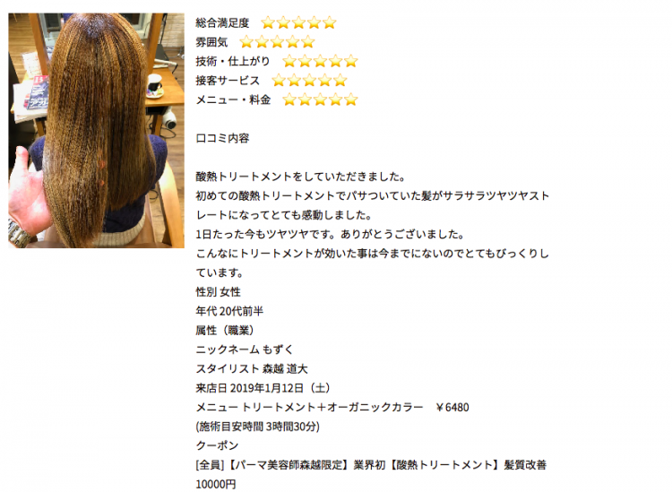 他店で初めて酸熱トリートメントみたいなものをやったのですが、全く癖も伸びず、元に戻ってしまいました