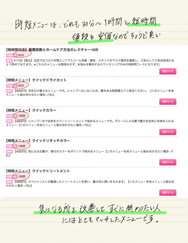 このような、時短メニューにより、いろんな心配事の1つ【長居したくない】の悩みを解決できるのではないか?と考えています。