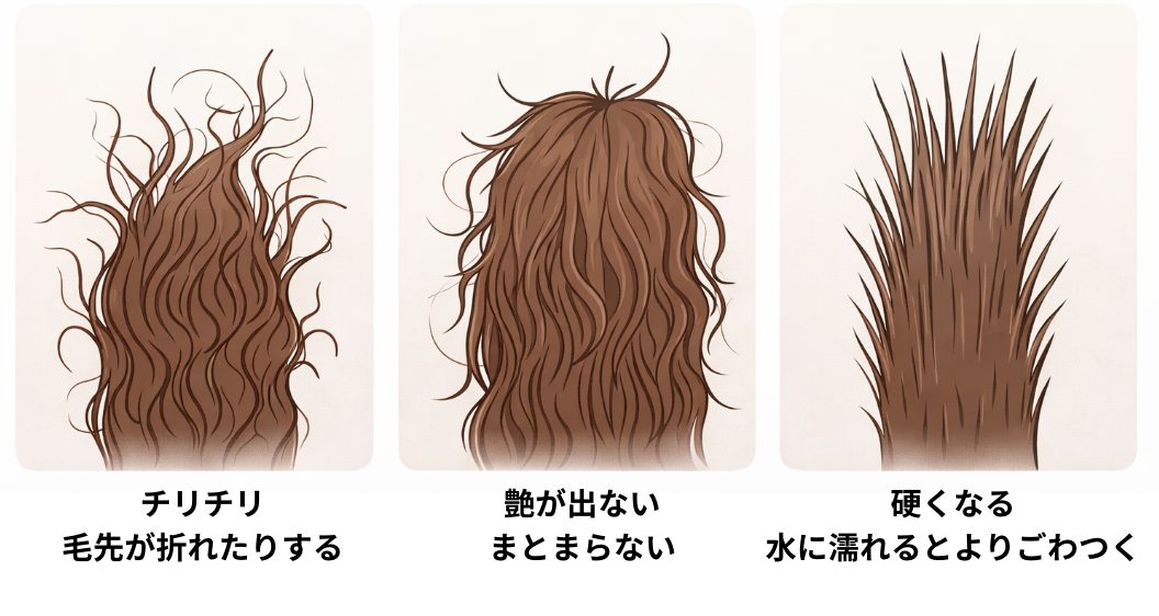 こうした刺激が積み重なることで、髪は少しずつ乾燥し、チリつきや広がりが出やすくなります。