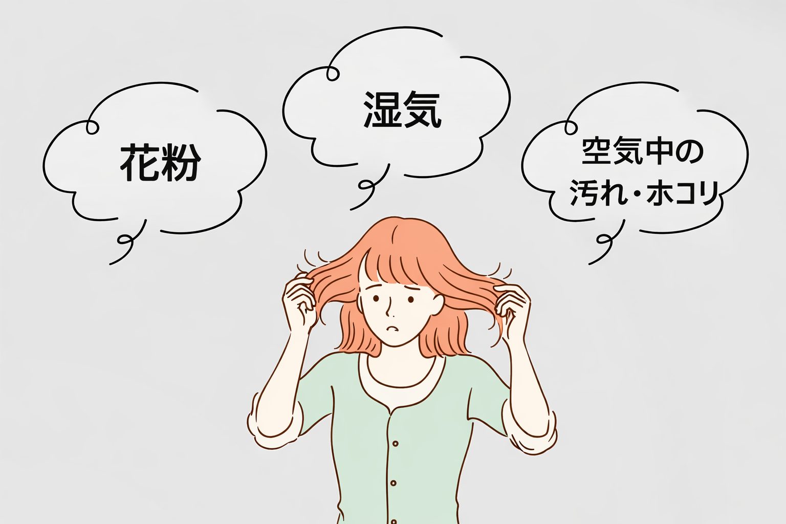 • 湿気や花粉で髪が広がりやすい